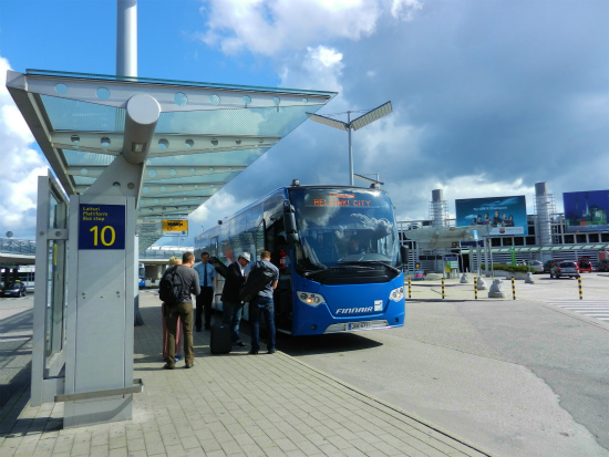 空港のターミナルを出てすぐ、横断歩道を渡ったところに10番のバス停があり、そこに停まっているフィンエアーバスに乗れば、ヘルシンキ中央駅まで約30分で到着することができます。