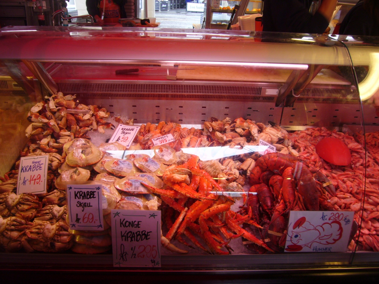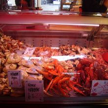 海の幸豊富な活気ある市場です。どこの店もエビ・カニなどが所狭しと並んでいます。食べるためのテーブルも用意されていました。またサンドイッチ等も置いてあります。エビ・カニ以外で多いのは、各種キャビア(キャビアといっても魚の卵全般)の瓶詰、キャビアペースト(たらこのペースト)などが多いです。ただし、こういった加工品はスーパーで手に入れた方が安くていいでしょう。