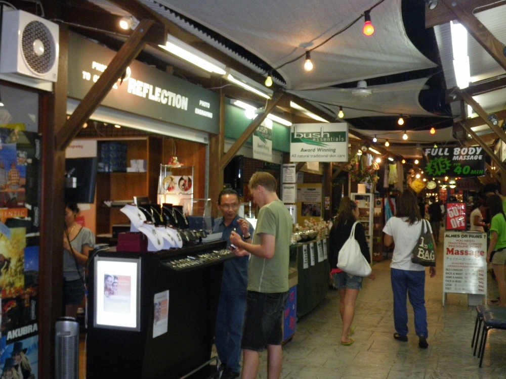 オーストラリアでは、一般のお店は大抵5時30分に閉まるため、OPツアーなどから帰って来る時間にはお店は閉まっていたりするのですが、ここナイトマーケットは毎日午後5時からオープンします!中をリサーチしたところ、特にここが高い訳ではなく意外と良心価格だったりするので、ケアンズでは貴重なお買い物スポットです!左端の通りは、足つぼマッサージのお店がずらりと並び、呼び込みが激しいので、ゆっくり買い物を楽しみたい方は、左端は避けた方がいいかも...。