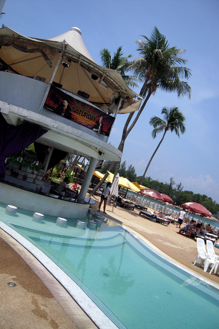 - セントーサEXビーチ駅から徒歩数分、もしくは、セントーサ島内を走るバスのバス停前。