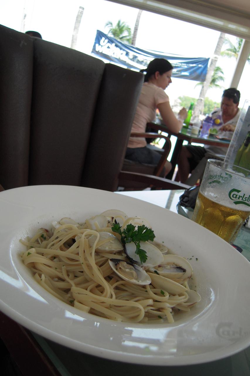 食事は、パスタと揚げ物、デザートをいただきましたが、どれもとても美味しい味付けで、日本人の口にとても良く合い、ビールもご機嫌に進みます。