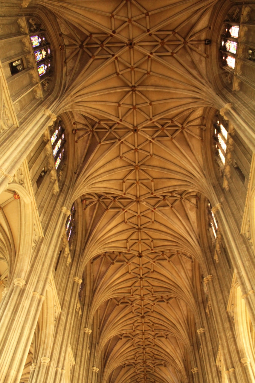 見上げんばかりの高いタワー、石造りだとは信じられないくらいに繊細で美しいアーチ型の天井をもつ『身廊』、息を飲む美しさの色鮮やかなステンドグラス、全く見事な『Bell Harry Tower(ベル・ハリー・タワー)』の天井、重厚かつ繊細な『聖歌隊席(クアイア)』、百年戦争で名を成したブラック・プリンスことエドワード黒太子のお墓のある「トリニティー・チャペル」、このカンタベリー大聖堂をより有名にした大司教トーマス・ベケットの暗殺など、見どころは尽きません。