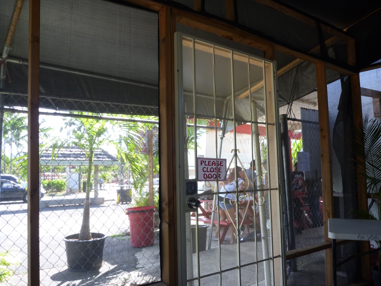 外のベンチで食べてくよ、と言ったら、店のご主人、裏庭に席があるから、そっちにまわっておいで、ポリネシアン・ブレッドも食べてほしいんだ、と言って、日陰のすずしいスペースを提供してくれました。騒がしい地元のガキどもといっしょじゃかわいそうだと思ったのかもしれません。