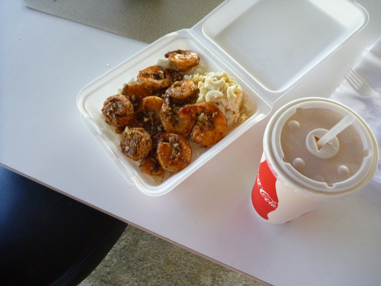昼にはちょっと遅い時間で、ハイスクール帰りの学生で店はずいぶん混んでました。地元の子たちがこんなに立ち寄るくらいだから、とちょっと期待はしていましたが、ここで食べたガーリック シュリンプ、ホントおいしかったです! 12ドルくらいだったと思いますが、エビは絶対ダズン……12匹は入ってた。ひとりではとても食べきれない量です。