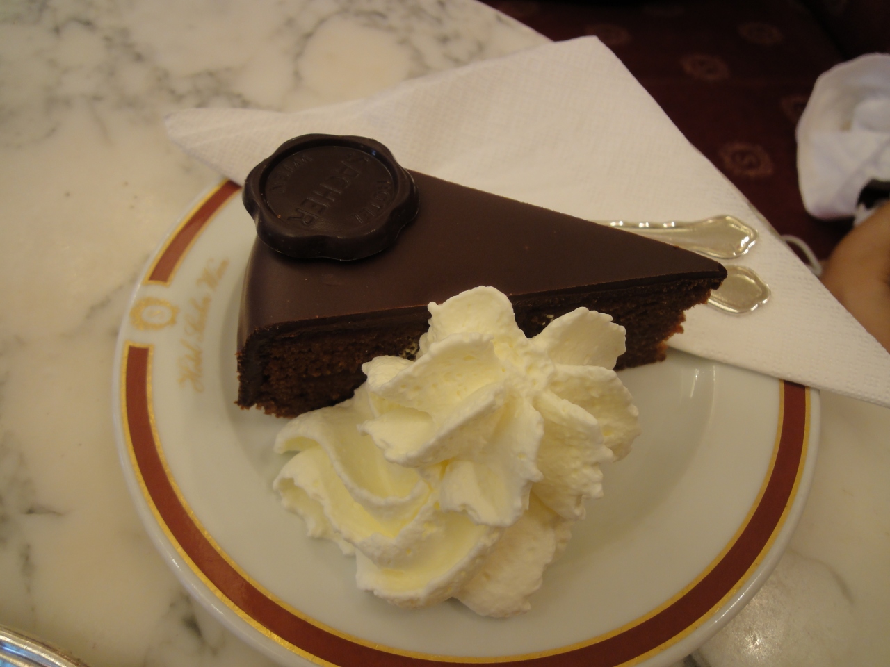 ウィーンに行ったら絶対食べようと思っていたザッハートルテ。デーメルとどちらに行くか悩みましたが、やはりホテルザッハーへ。3時頃に行って、5分くらい並びました。味は想像通り甘い!二人で一つ注文しましたが、甘党ではない私にはそれで十分でした。一緒に頼んだアインシュペナーがおいしかったです。
