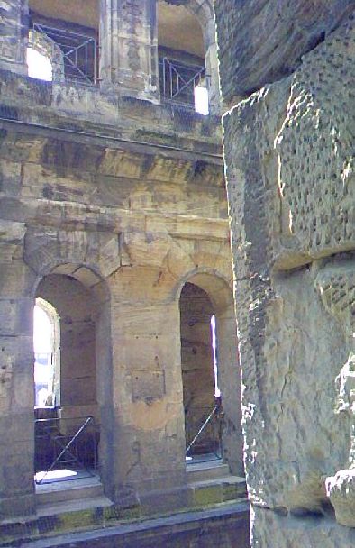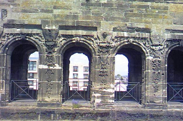ローマの遺跡(ポルタニグラ)は、柱が、ロマネスク風のジメオン教会の物だ。
