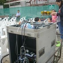 渋滞を避けて団体で出掛けて来るのでしょうか。5時の開門を待って公園の芝生で寝転ぶ何組かの母子がよく居ます。おもらいさんですね。よく音楽会やイベントがあります。朝の散歩で設営するのを見て夕方見学をします。有難い公園です。