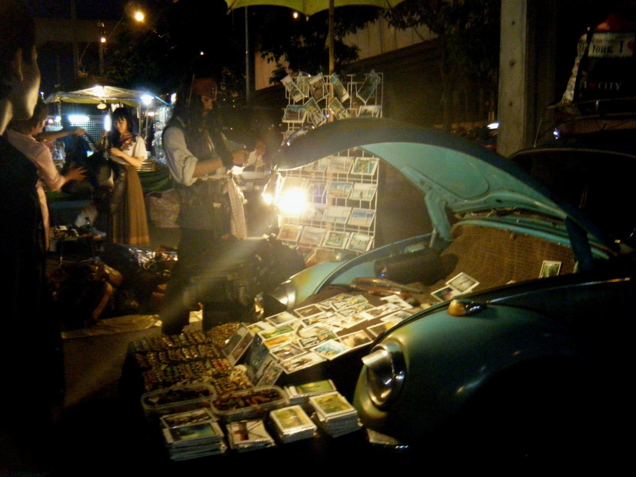 土曜の夜のみ開催される「ラチャダーのナイト・マーケット」。マーケットというよりは夜開催のフリマという感じです。でも日本のフリマよりおしゃれな感じで、地元の若者で賑わっていました。衣類などは当たり前ですが、こんなもの誰が買うのか?と思うくらいのガラクタもあり、なかなかおもしろいです。とにかく雰囲気がいいです。