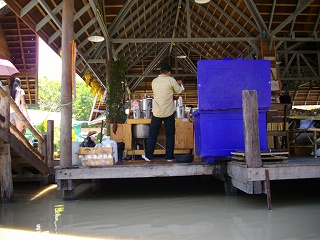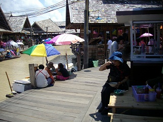 入場料が要らない。売り物も特別価格というものじゃなく一般的な価格。有難いテーマパーク。大型バスが何台も路上駐車している。駐車場には乗用車もすごい。ボートの売り人から麺類やヤシの実ジュースを購入。