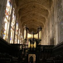 キングスカレッジはケンブリッジの大学の中でも、一番美しい建物です。これが大学?と思うほど。ヘンリー6世によって1441年に設立された大学は、教会もすばらしく、中の装飾の見事なこと!!教会は1547年に出来上がったとのこと。後期ゴシック様式のきれいな教会でした。