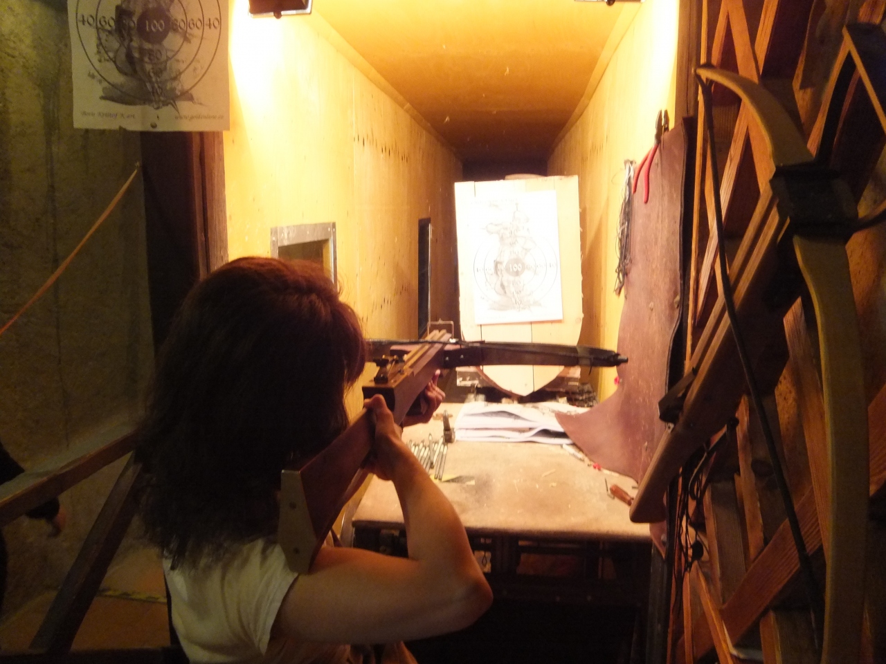 黄金小路の2階でクロスボウ体験できます