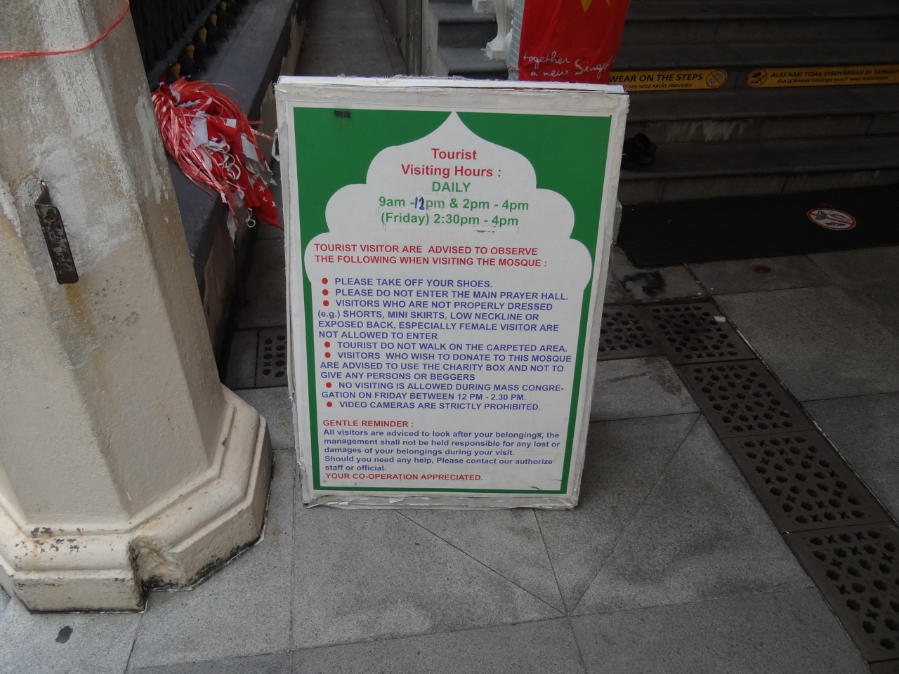 今までモスクは訪れたことがなかったので(マレーシアのKLやマラッカで前を通ったくらい)、シンガポールのアラブストリートでは、ここ1点だけでしたが訪れました。