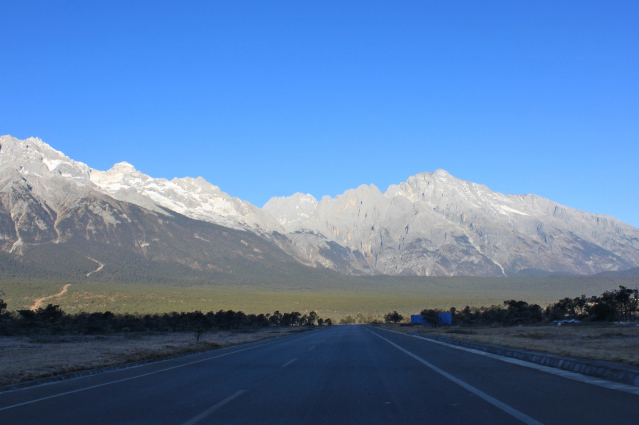 朝8:30、麗江古城をチャーターしたタクシーで出発。玉龍雪山は麗江古城の北約15kmのところにそびえています。
