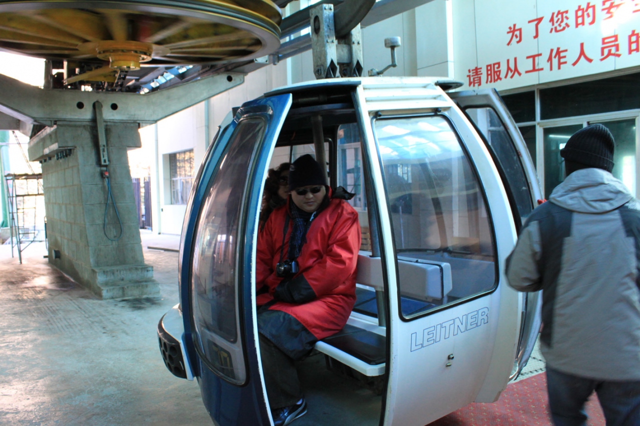 9:45、ゴンドラに乗車。6人乗りで、3人ずつ、前向きと後ろ向きに分かれて座ります。