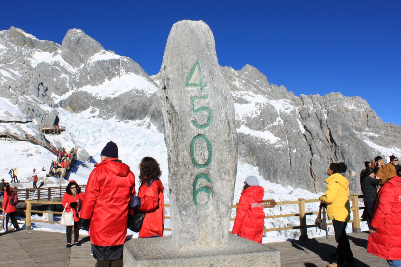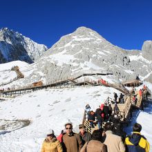 玉龍雪山は標高5,596m。ロープウェイでいきなり4,506m地点まで登り、そこから階段で最高4,680m地点まで行くことができます。