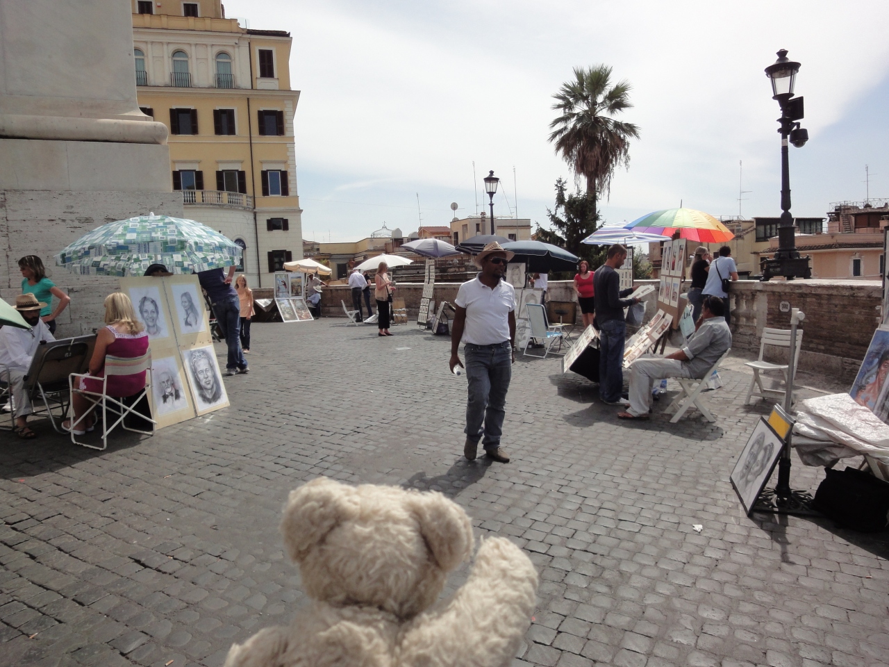 もろ観光地という感じです。怪しげな物売りやら観光用の馬車やら、ごちゃごちゃしています。記念撮影を終えたら、階段の上部に行ったら、割とすいています。絵描きさんもいて、似顔絵を描いてもらえば、いいお土産になるかもしれません。