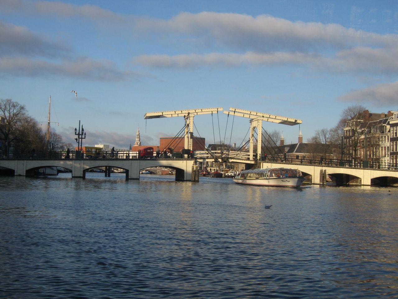 マヘレの跳ね橋は、アムステルダムの運河クルーズでの