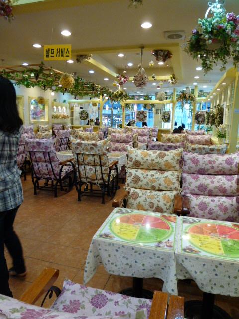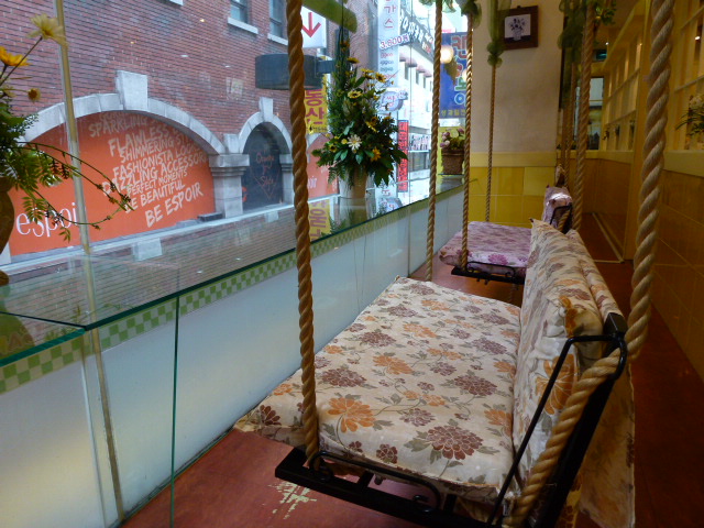 ここに2人並んでお外を見ながら1つのパッピンスを頂くのが韓国流のようです。