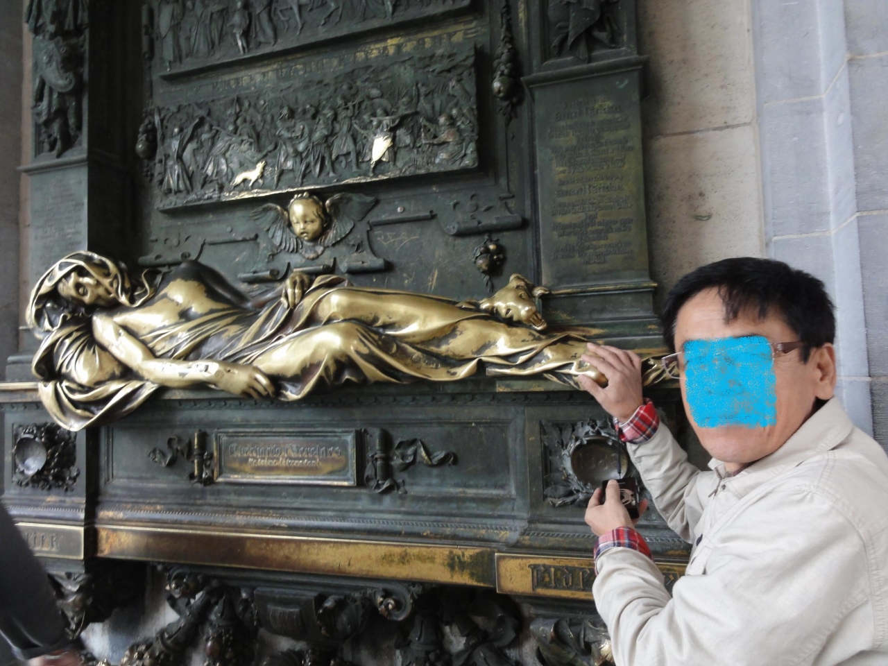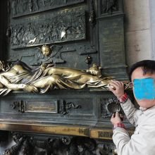 家の軒先にある光輝いたセルクラースの像。この像に触れると幸福をもたらすと云うことで頭から足まで触りました。沢山の人々がさわるので光輝いています。セルクラースは1388年に暗殺された街の英雄です。幸福がくるかな!