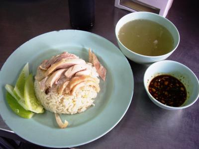 ピンクのカオマンガイ屋さん。(従業員がピンクのポロシャツです。)