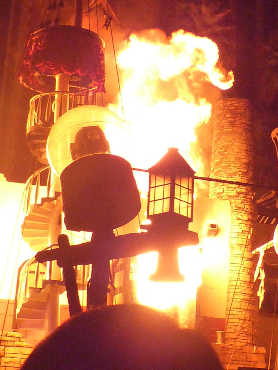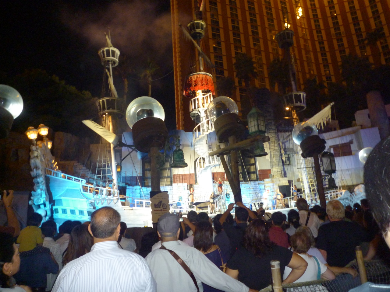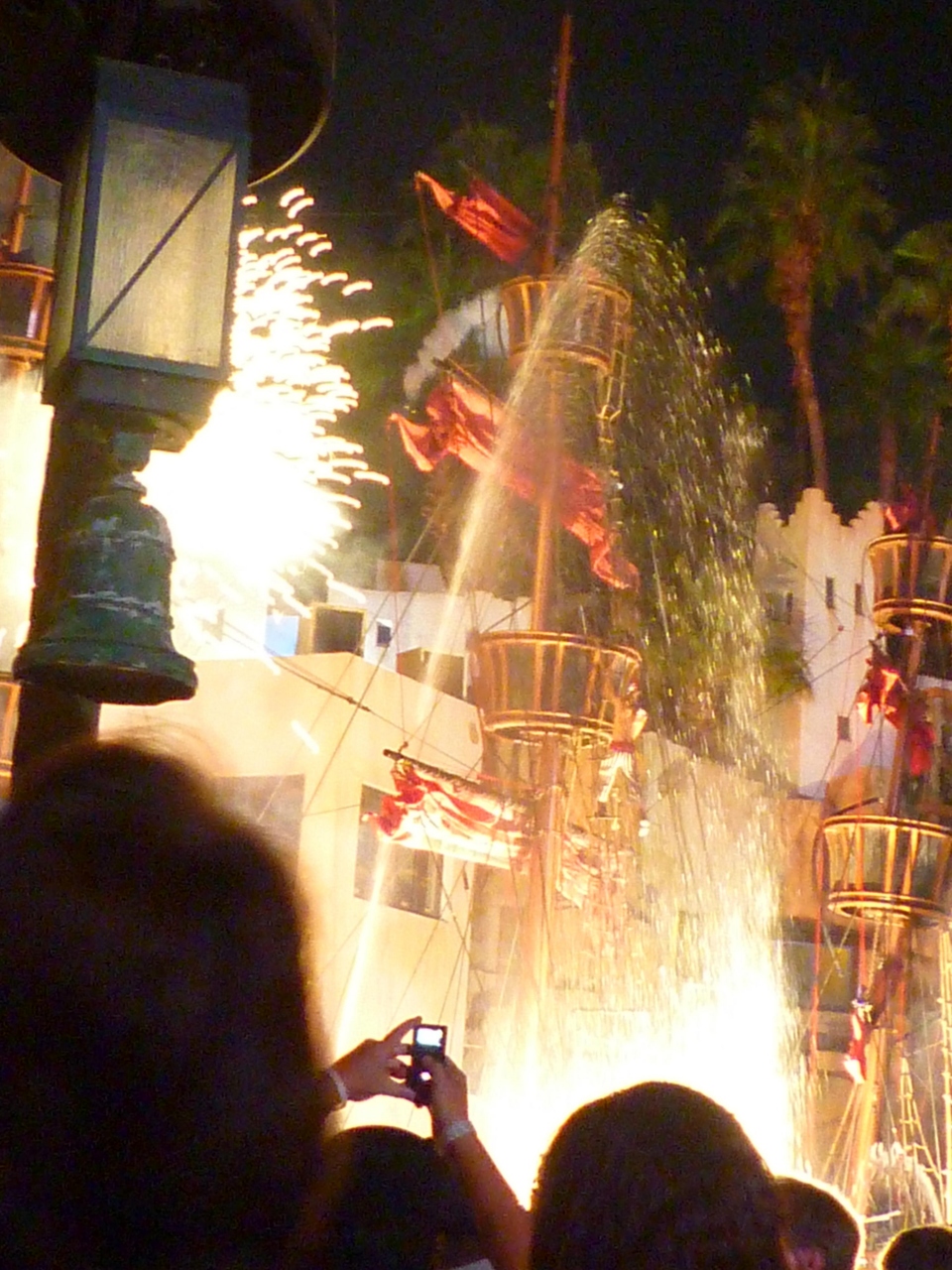 無料にしては見応えのある海賊船バトルのショーです。火花が散ったり、炎が上りため息つきます。人気のショーだけに早めに行って席取りしないと