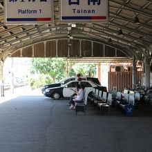 高雄から自強号で台南に到着しました。なぜかホームにパトカーがありました。列車を降りるとすぐに改札がありすぐに駅から出ることが出来ます。駅の周辺は散策しませんでしたが、地方の駅と言った感じで駅前に大きなビルがありました。