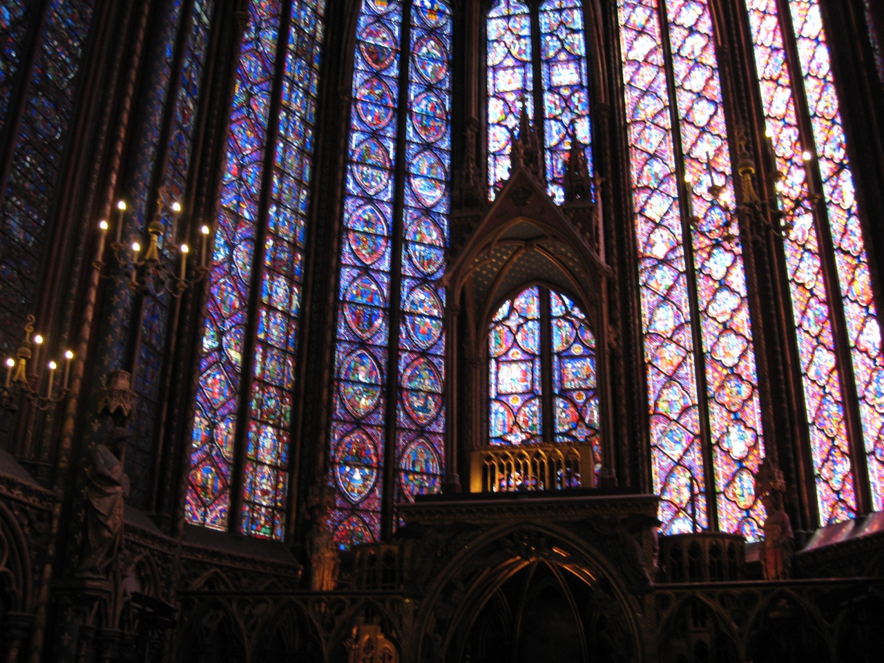 壁にステンドグラスがぎっしりとあり、荘厳な景色となっています。