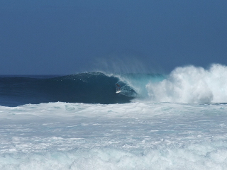 巻き上がる波で作られる巨大チューブは、日本ではみられません
