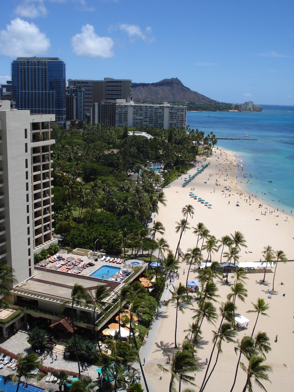 世界に知れた白砂のワイキキビーチ。ダイアモンドヘッドを遠くに見ながらの海水浴はその場所にいるだけでも幸せに感じさせてくれるビーチ、海を眺めているだけでも至福の時間が流れます。深夜ホテルの窓からワイキキビーチを観ていたら大型掃除機で綺麗にしていました。流石に手入れにもお金を掛けています。