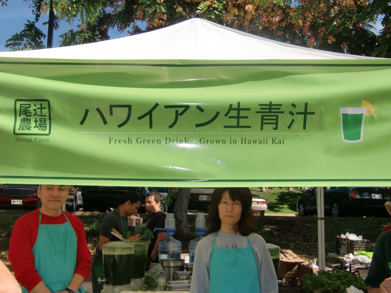 7時半からだというのにかなり駐車場も混んでいて何度か駐車スペースを探すので時間がかかりました 基本的にこの地域の中で生産されたものということでなかなかすばらしいものでした。 ジンジャージュースやアワビ・・・また 以外とよかったのが「青汁」でした。ただ 1杯5ドルは高いかな??