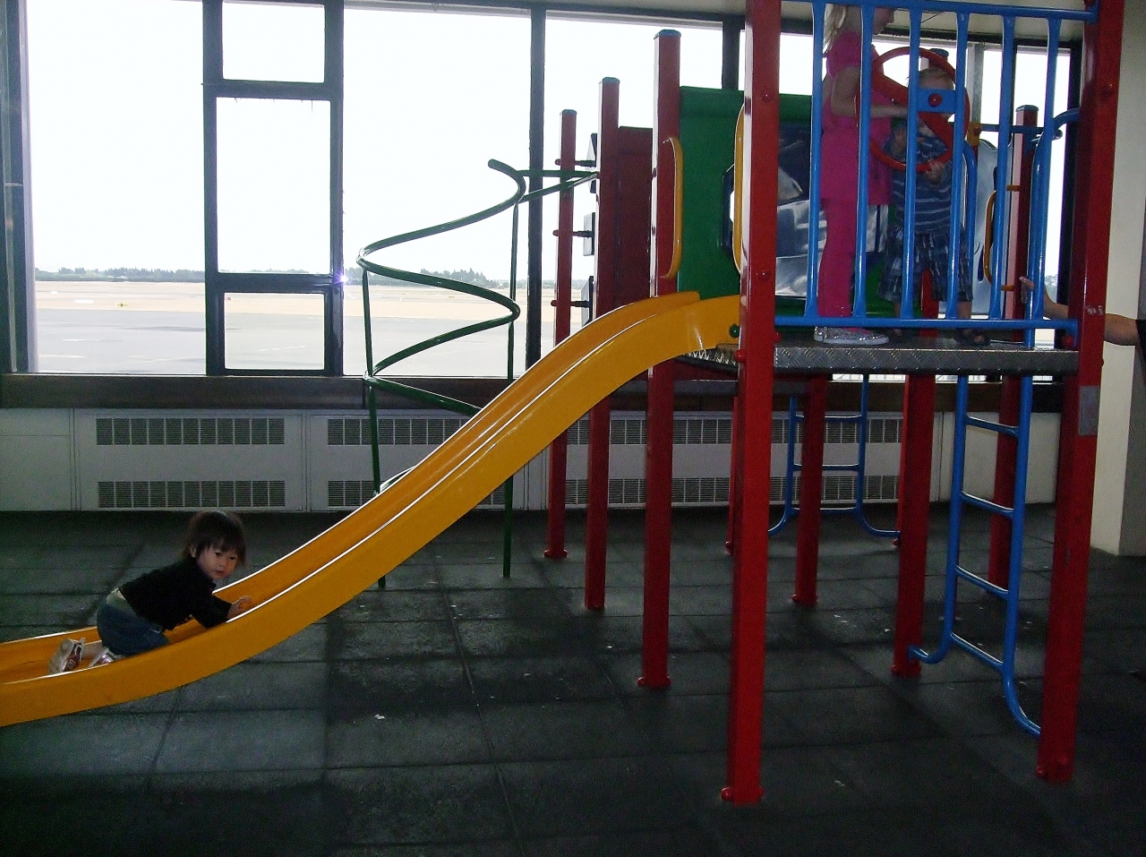 オークランド国際空港と異なり国内線と国際線ターミナルが隣接しているので、国内線に乗り継ぐのであればオークランドよりもクライストチャーチのほうが便利。クライストチャーチ国内・国際線ターミナルいずれにもキッズスペースがある。子連れで旅する旅行者が多いせいかもしれない。娘も滑り台がきにいっていた。またキッズスペースから通路を挟んだ向かい側の扉を開けると屋上の展望台へ行くことができ、離発着する飛行機を眺めることができる。