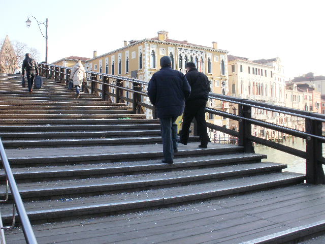カナルグランデ(大運河)に架かっている大橋3つのうちの1つ。(現在はコスティツツィオネ橋の4つ)お店が立ち並ぶ有名なリアルト橋に比べ、ただ橋を渡るだけの橋なので面白みにかけるかも知れませんが、橋の周りには緑もあり、木の橋に温かみを感じます。北から南に橋を渡ると観光客もぐっと減り、穏やかなヴェネツィアを味わえます。橋の上からサンタ・マリア・デッラ・サルーテ教会のクーポラを眺める事も出来て、橋を渡っているだけなのに楽しい気持ちになれました。