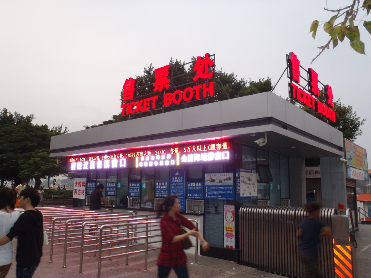 アモイにはいたるところに埠頭(碼頭)がありますが、コロンス島に渡るフェリー乗場は「輪渡」で、バス停で言うと「輪渡」「鷺江道」です。