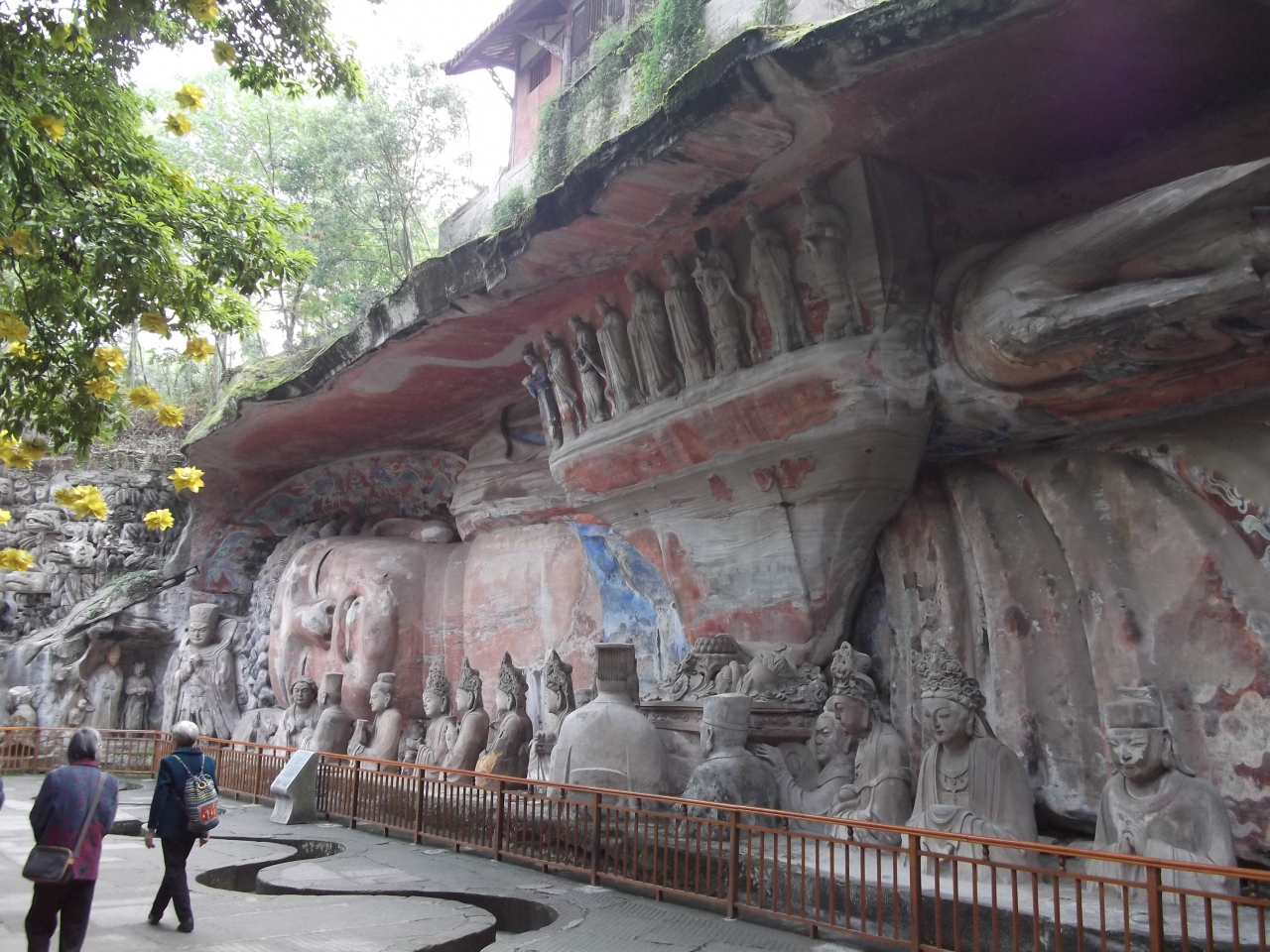 世界遺産・大足石刻・宝頂山の一番の見どころは、やはり大仏湾の釈迦涅槃聖跡図でしょう。横になっているお釈迦様は31mにおよびます。