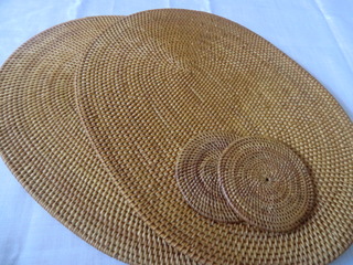 「アシタバ」のアタ製(熱帯性植物のツル)のバッグやコースター、プレイスマットはお土産に最適。