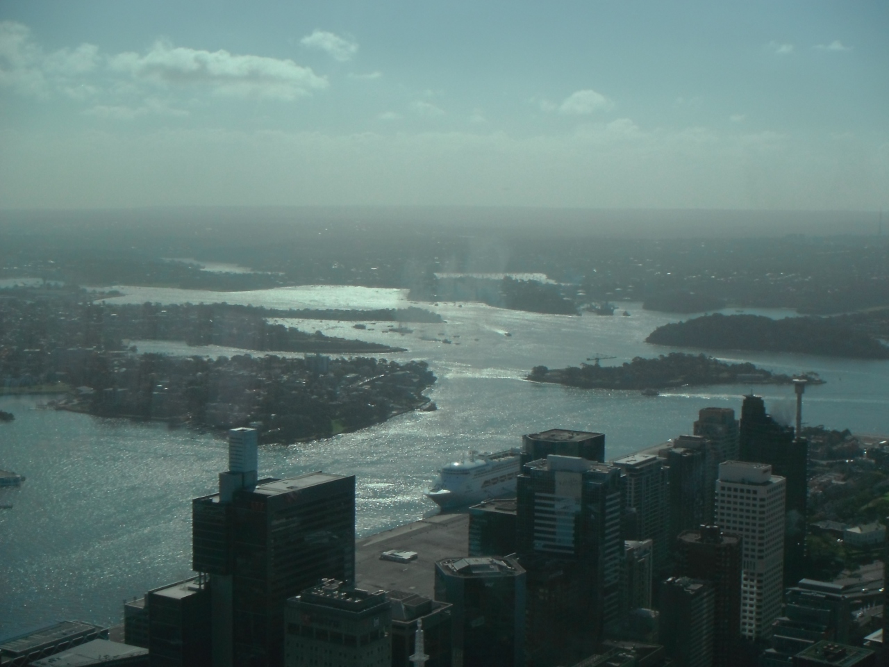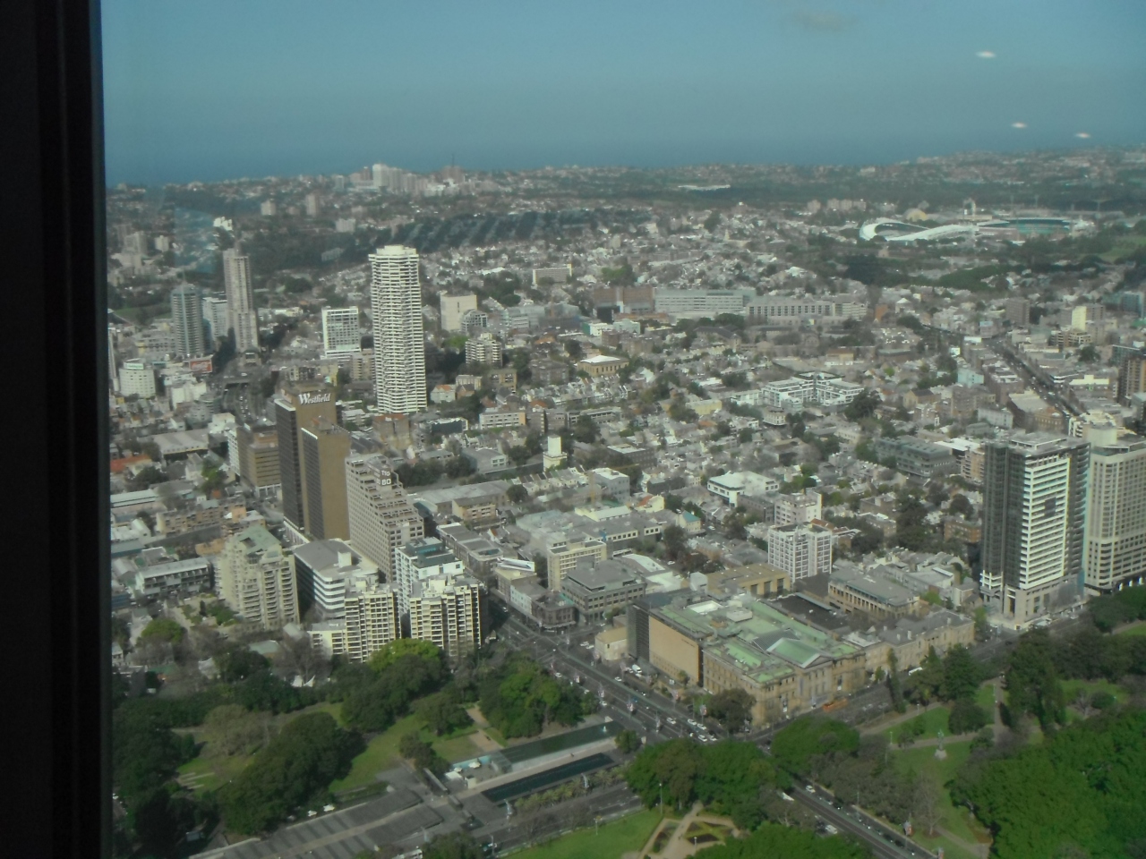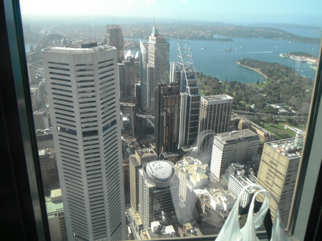 晴れていると、ずっと先まで見通せます。全面がガラスになっていて、いろんな角度からシドニーの街を望めます。