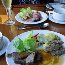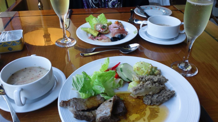 サンデーブランチのビュッフェは、シャンパン(スパークリングワイン)がフリードリンクで、ローストビーフやお寿司、パスタ、天ぷら等々お料理の種類も豊富です。