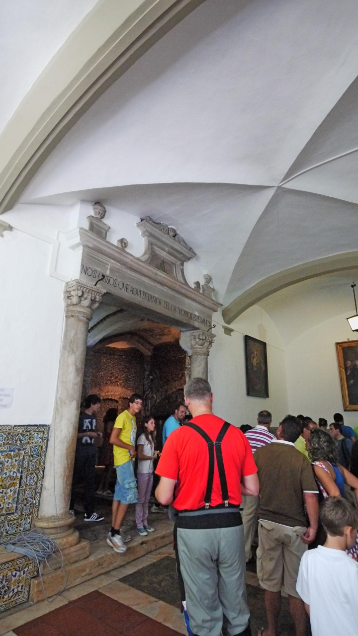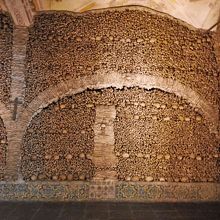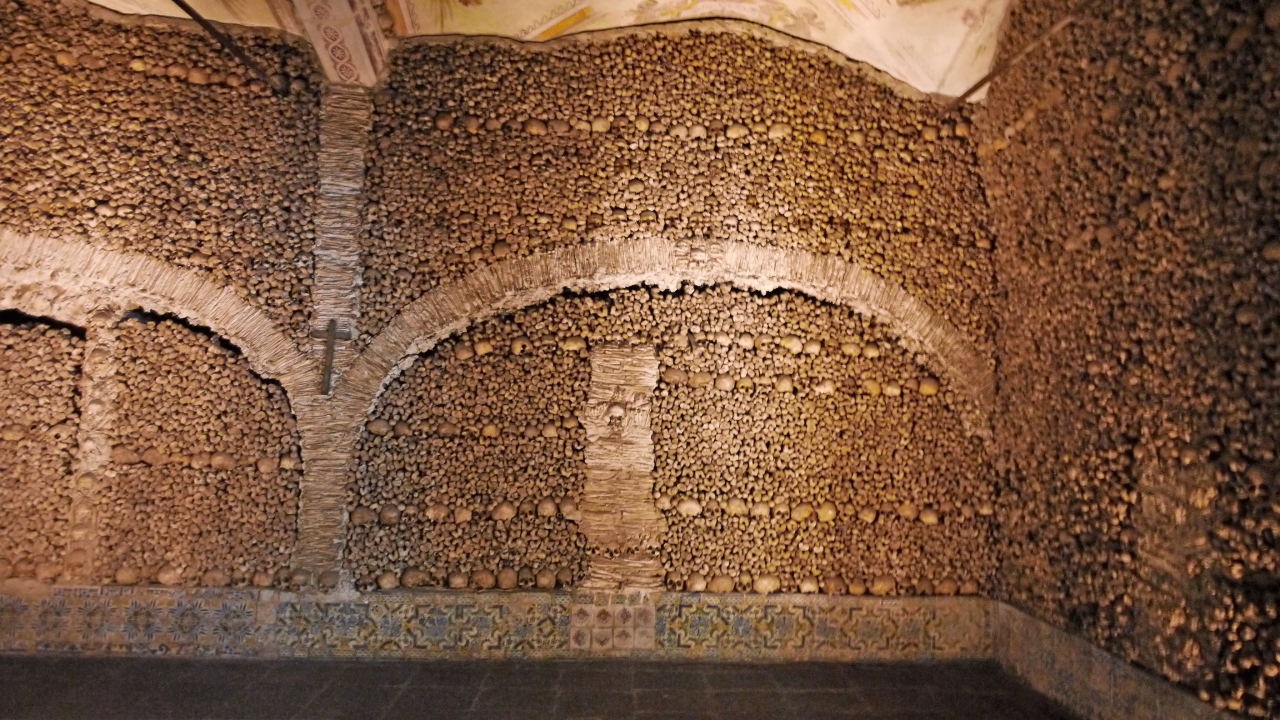 サンフランシスコ教会は16世紀にたてられたマヌエル様式の美しい教会だが,それよりも人骨堂が有名.人の骨を並べて装飾にしてみせるという感覚,私たちには文化の違いを感じる.修道士が瞑想のためにつくられたというが,仏教文化からは理解できない.