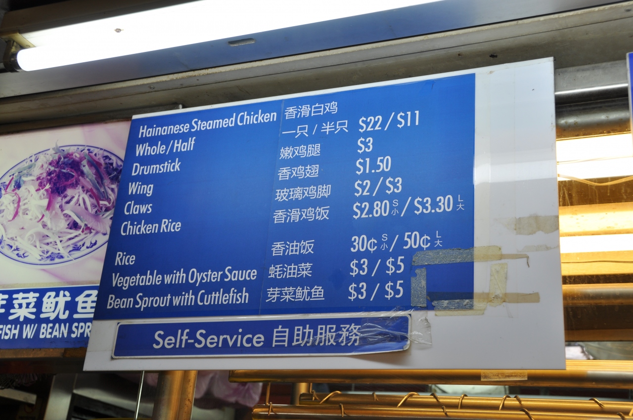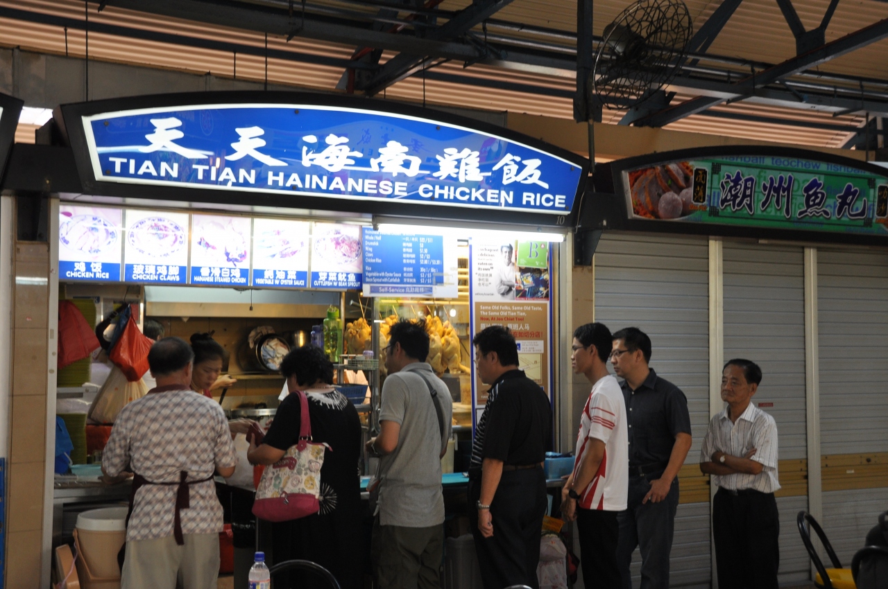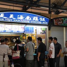 チキンライスの天天海南鶏飯はいつでも行列ができています。柔らかい鶏肉とショウガの利いたパラパラのタイ米が絶妙にマッチ。私は大好きです。チキンライスは大きなサイズでS$3.30と安い!その他にもいろんなお店が軒を連ねていますので、いろんなものを買って、食べることができます。気軽に入れます。