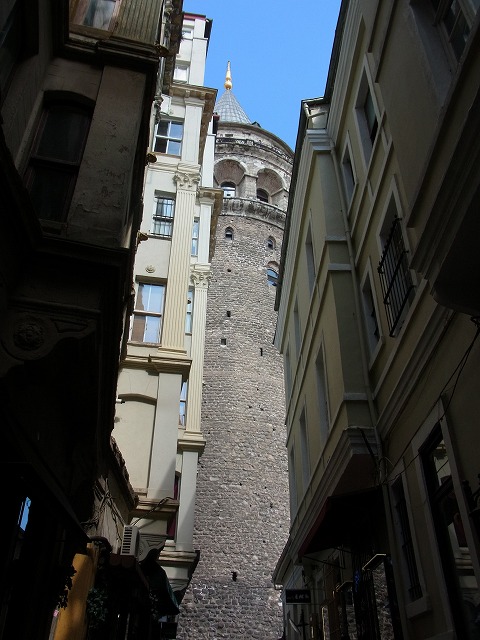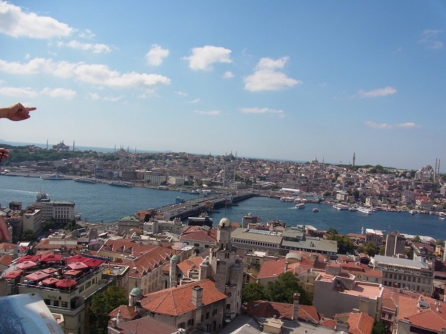 トラム1番でカラキョイで下車し、ガラタ塔の表示がある方へ。周囲は雰囲気悪いです。薄暗く、落書きだらけで入り組んだ路地です。上まではエレベーターで上がれるけれど、最後はらせん階段です。入場料10リラ。 日本人率高し。景色は抜群で、イスタンブールが一望できて感激でした。