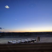 バラハス空港内のカフェで朝食をとりましたが、朝日が昇るのが見えて、飛行場が見えて気持ちの良い景色でした。