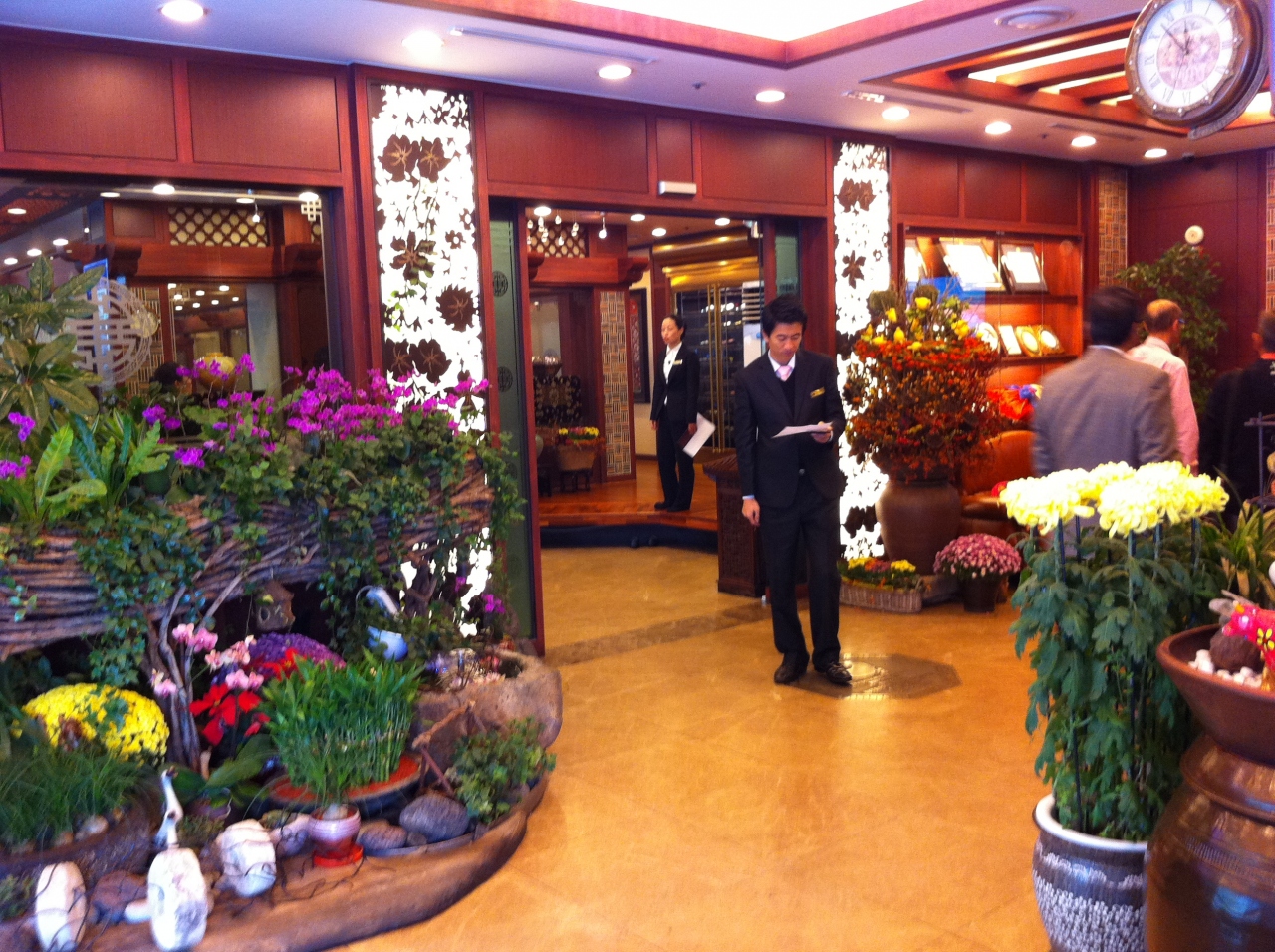 団体の客も呑みこめる大きなお店です。また、非常に綺麗でテーブル席でこじんまりとした食事も勿論可能です。飲み物に関して売りは、ワインかな?1Fに大きなガラス張りのワインセラーが見えます。ワインリストも別に作られており、いろいろな種類が楽しめます。1万円クラスもありますよ。綺麗なお店なので、外国人でも全く違和感がありません。新しい建物のため、その分風情はありませんが、いいお店です。