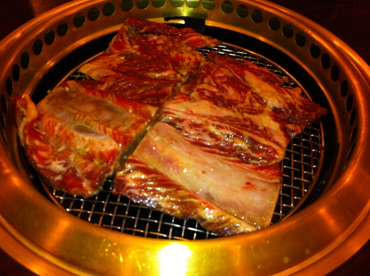 肝心のお肉ですが、しっかりと適度な脂身がついた大きな水原カルビ肉です。