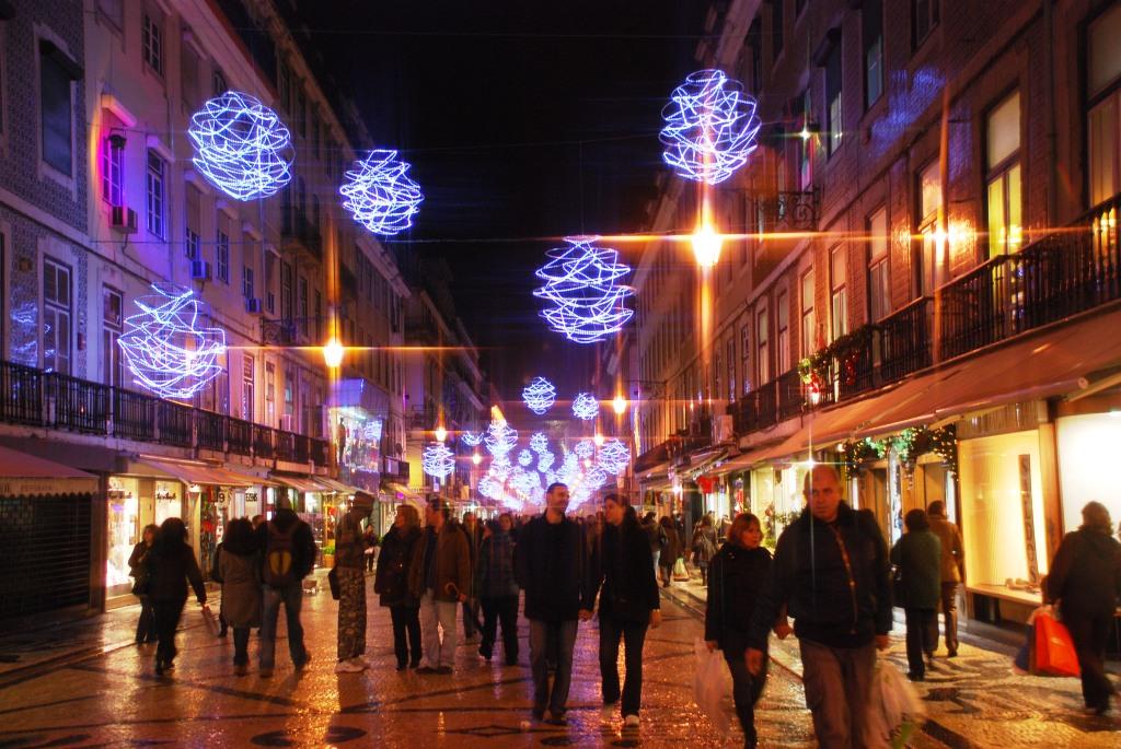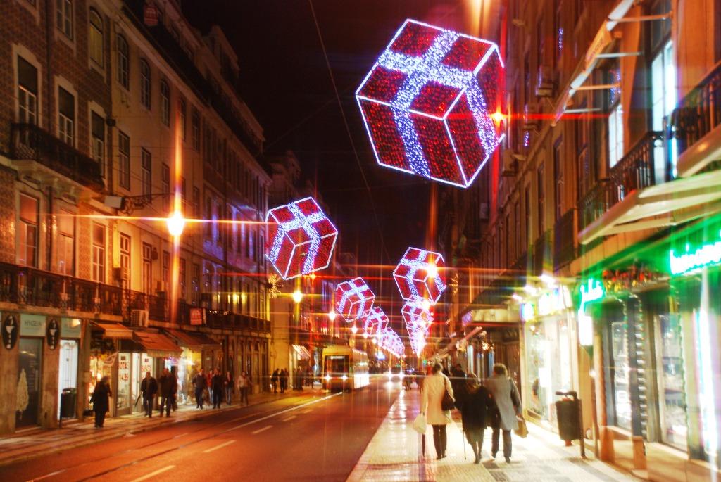 バイシャ(低い土地)という意味の示すとおり、坂の多いリスボンの街ですが、ここはフラットな上に、基盤目状に道路がのびているので、観光客でもとても歩きやすいエリアす。ブティックやレストランも多く立ち並んでいて夜遅くまで賑やかです。訪れたのが、ちょうどクリスマス時期だったので、各通り毎に違うライトアップがされていてとてもキレイでした。