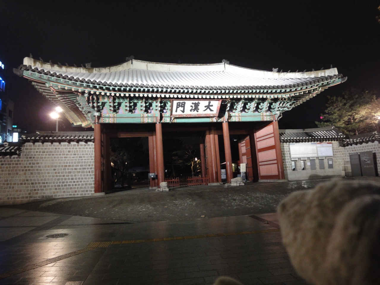 夜、貞洞劇場に行くために近くを通りかかり、外観のみ見学しました。大漢門がライトアップされて、美しかったです。
