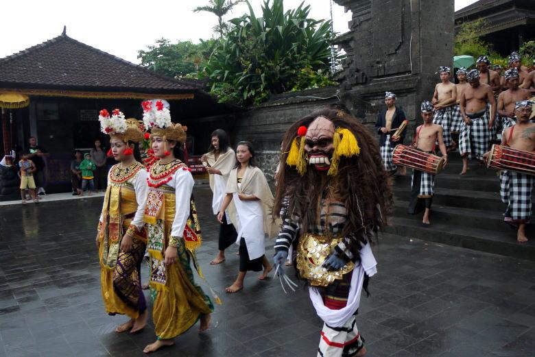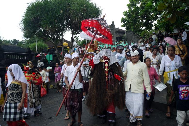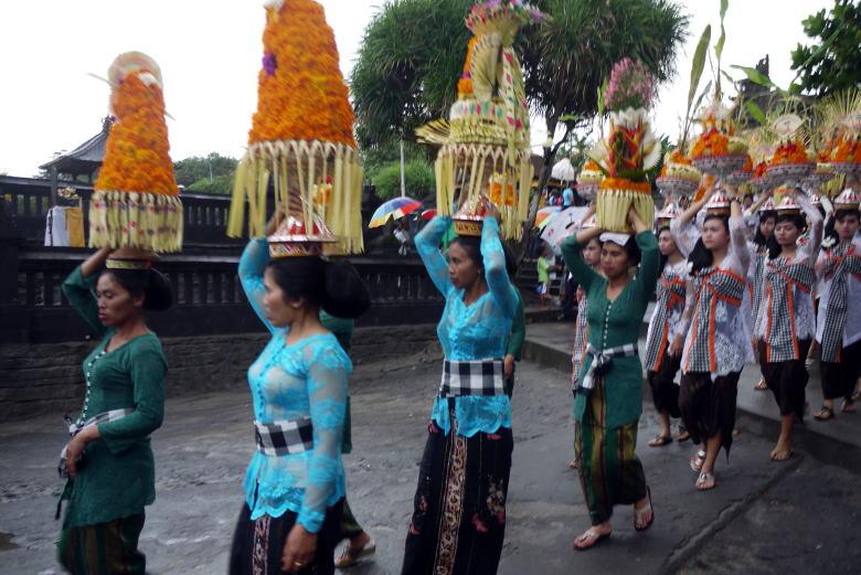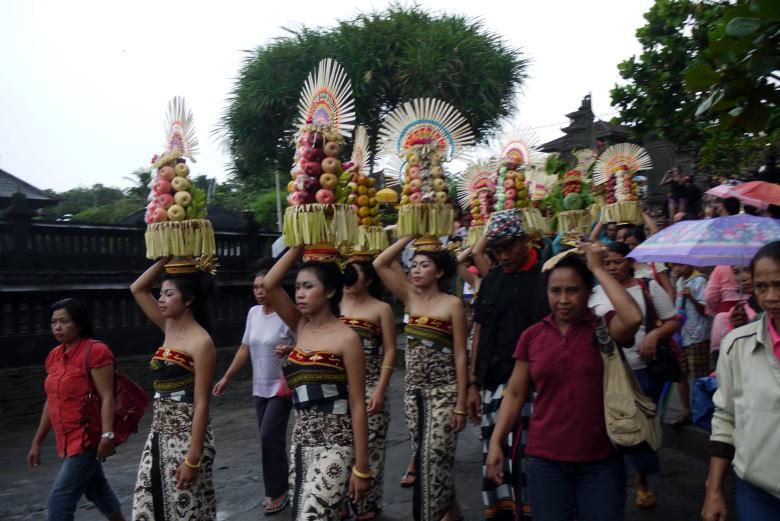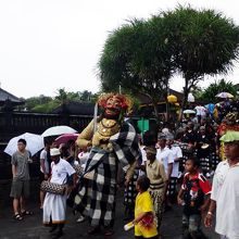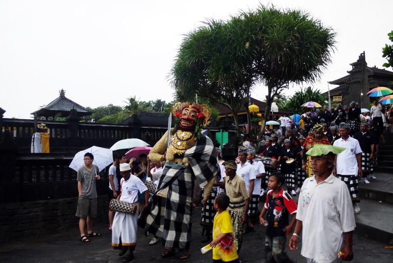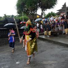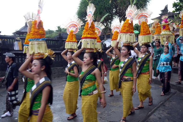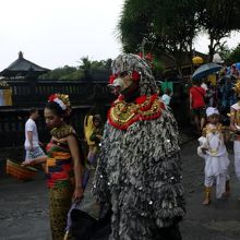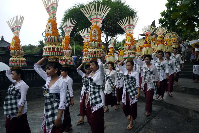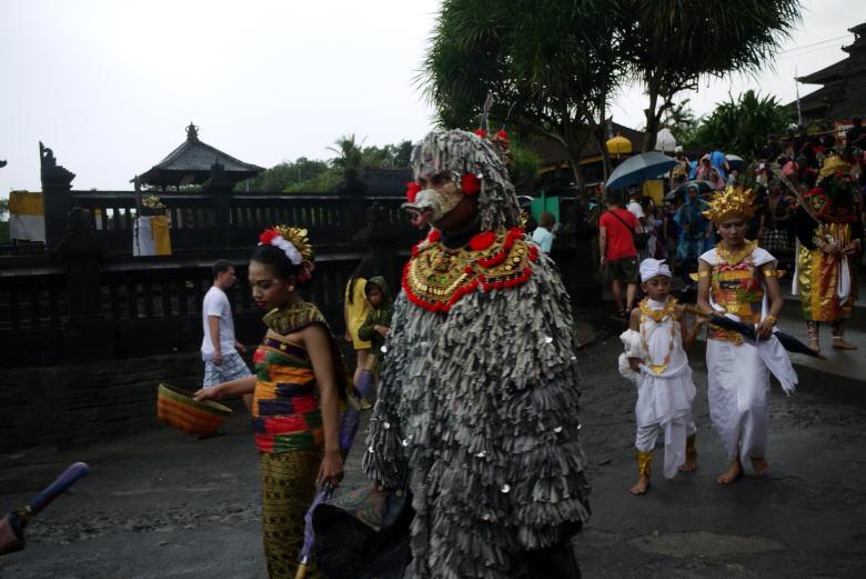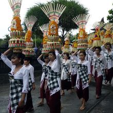 タナロット寺院を見下ろすテラスで一休みの後、クタへ戻ろうとしたところ、民族衣装の行列がやって来ました。