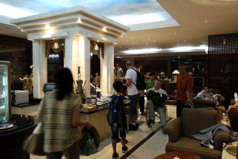 たまたまそうだったのか、ラウンジ内は大混雑で、ようやく1つのテーブルを探して座ることが出来ました。