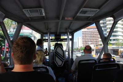 ツアーの申し込みをする前に、市内のいろんな場所に置かれているフリーペーパーなどの割引クーポンをgetする必要があります!水陸両用のバス「アクアダックツアー」は、ゆる~い乗り物ですが、の~んびりとゴールドコーストの豪邸を見学できたり、なかなか楽しめます。陸から水に入る1瞬だけテンションもupしますが、それ以外はゆるゆるなので、お子さんにもオススメのアトラクションです。