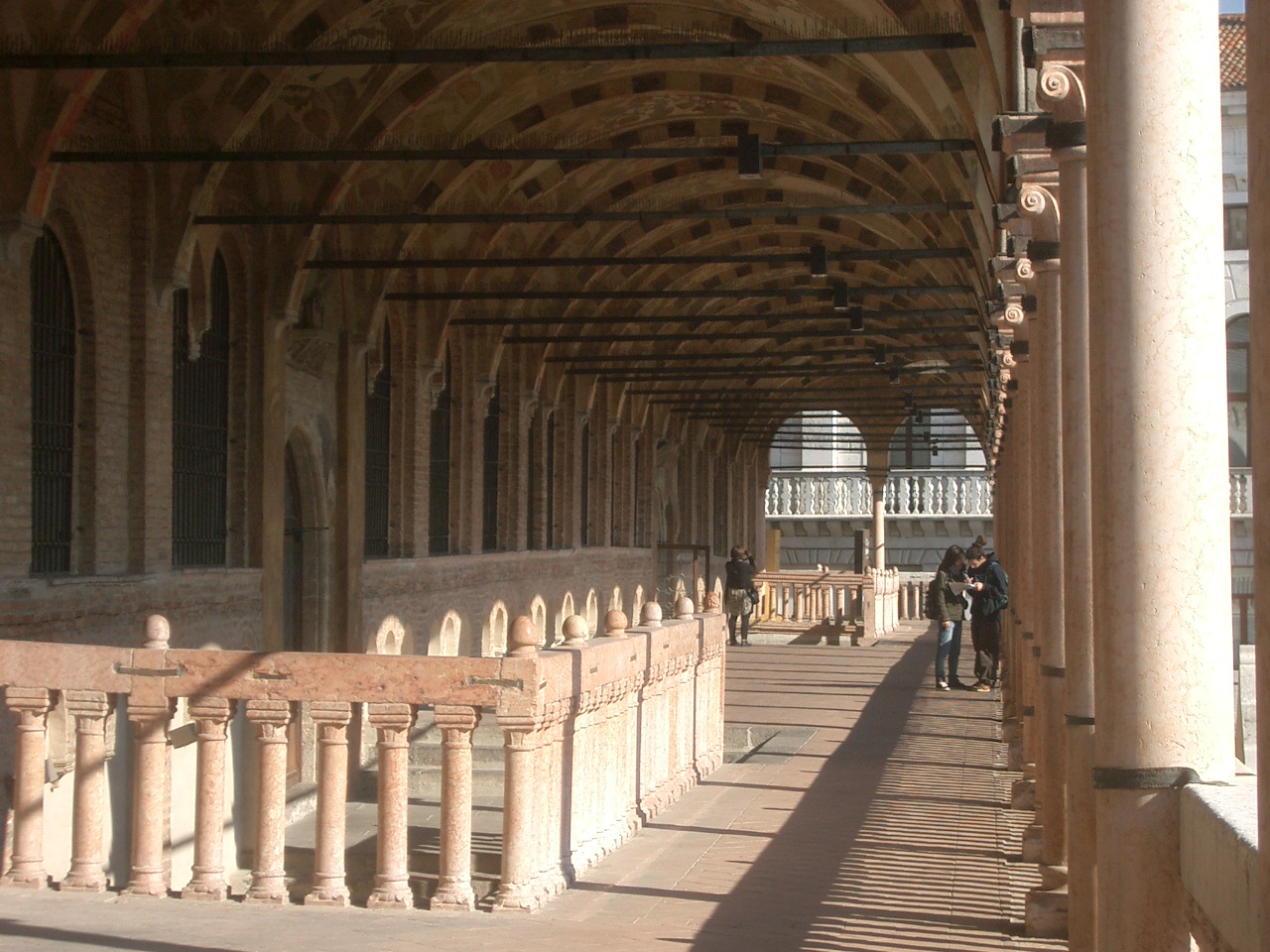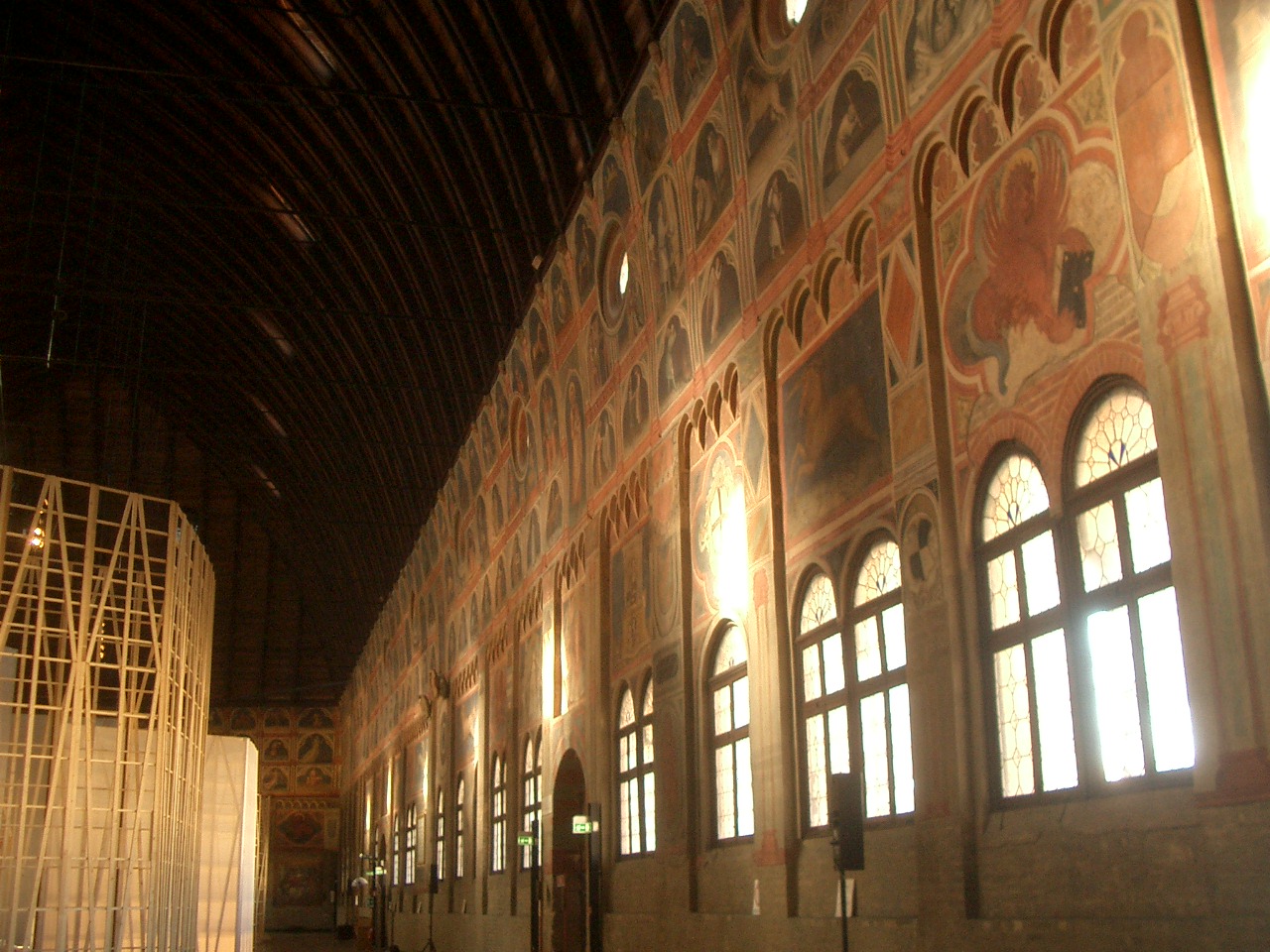 パドヴァのラジョウーネ宮。サローネとはサロンのこと。謁見の間であったり、ダンスの間であたり、要するに社交の場です。広い広間には壁画と天井画がありとても豊かな空間です。廊下の天井もすばらしい。ヴェネチア提督の住居はパドヴァにありましたので、ヴェネチア権力の中心的な会場といって良いでしょう。