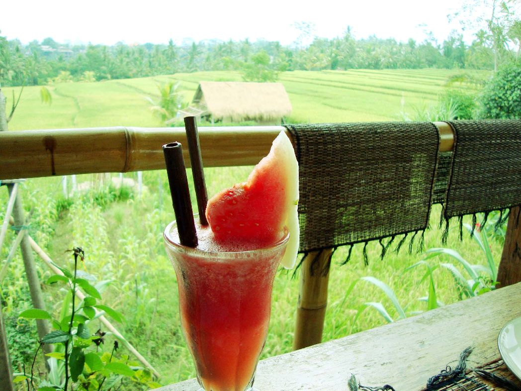ガイドブックには「ボダッマリア」または「サリ・オーガニック」(農園名)でウブドの田園散歩コースに載っているカフェです。